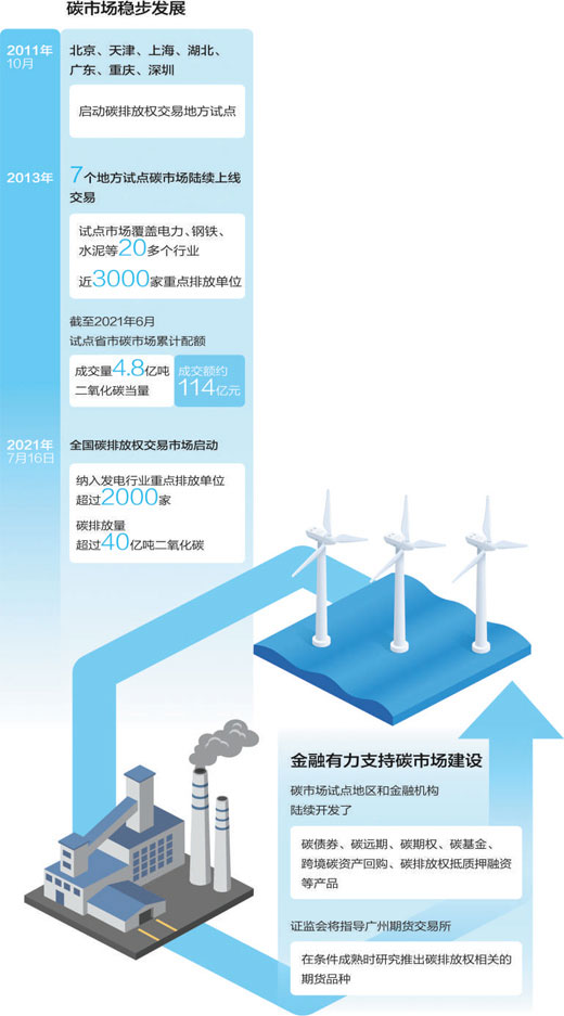 9點(diǎn)30分正式開市,10分鐘后,累計(jì)成交金額超過2000萬元。全天4個(gè)小時(shí)的交易,成交量410萬噸,收盤價(jià)單日漲幅6.7%。這是7月16日全國碳排放權(quán)交易市場啟動(dòng)后的火熱交易景象。 建設(shè)全國碳排放權(quán)交易市場,是利用市場機(jī)制控制和減少溫室氣體排放、推動(dòng)綠色低碳發(fā)展的一項(xiàng)重大制度創(chuàng)新,是實(shí)現(xiàn)碳達(dá)峰、碳中和的重要政策工具。從地方試點(diǎn)起步,到全國市場啟動(dòng),10年間,經(jīng)驗(yàn)不斷積累、制度逐步完善。碳市場是如何運(yùn)行的?碳價(jià)格是怎樣形成的?金融業(yè)又將在其中發(fā)揮什么作用?記者采訪了相關(guān)企業(yè)、交易所和專家。 “無形之手”助減排 碳市場能以最低成本、最高效率實(shí)現(xiàn)碳減排,充分發(fā)揮價(jià)格發(fā)現(xiàn)作用 在全國碳市場啟動(dòng)前,地方碳市場試點(diǎn)工作已開展了10年,推動(dòng)了不少企業(yè)的綠色轉(zhuǎn)型。 “當(dāng)時(shí)公司以每噸60元的價(jià)格購買了約25萬噸碳配額。”2014年的首次碳交易讓廣州恒運(yùn)企業(yè)集團(tuán)股份有限公司副總經(jīng)理周水良記憶猶新。廣東是首批開展碳排放權(quán)交易試點(diǎn)的省份之一,作為重點(diǎn)電力生產(chǎn)企業(yè),廣州恒運(yùn)于2014年被納入碳排放管理,當(dāng)時(shí)由于碳配額不足,企業(yè)購買了約1500萬元碳配額履約。 隨著試點(diǎn)交易的深入進(jìn)行,廣州恒運(yùn)逐步認(rèn)識(shí)到減排不只是壓力,碳資產(chǎn)管理、減碳技術(shù)應(yīng)用也能帶來經(jīng)濟(jì)效益。于是,公司成立了專門的節(jié)能減碳專班,升級(jí)改造發(fā)電機(jī)組,大力發(fā)展天然氣發(fā)電等低碳的清潔能源項(xiàng)目……一系列改造升級(jí)讓廣州恒運(yùn)實(shí)現(xiàn)從花錢購買碳配額到出售碳資產(chǎn)獲利的轉(zhuǎn)變。2020年,企業(yè)通過出售碳資產(chǎn)獲利3000多萬元。 像廣州恒運(yùn)一樣,不少控排企業(yè)嘗到了碳市場帶來的甜頭。“越來越多企業(yè)意識(shí)到,只有主動(dòng)減排,才能在綠色低碳轉(zhuǎn)型的大潮中占得有利先機(jī)。”廣州碳排放權(quán)交易所總經(jīng)理孟萌介紹,在試點(diǎn)過程中廣東碳市場較為活躍,截至今年6月,碳排放權(quán)累計(jì)成交金額超過40億元,居全國首位。 “更重要的是,碳市場切實(shí)推動(dòng)產(chǎn)生了良好的減排效果,通過碳排放總量控制、指標(biāo)分配和履約機(jī)制,廣東碳市場整體實(shí)現(xiàn)絕對量減排,2019年減排量達(dá)4374萬噸,減排幅度達(dá)11.4%?!泵厦日J(rèn)為,不論是國外實(shí)踐還是國內(nèi)試點(diǎn)都表明,碳市場是一個(gè)能夠以最低成本、最高效率實(shí)現(xiàn)減排的政策工具。 這一市場是如何運(yùn)轉(zhuǎn)的?孟萌以廣東碳市場為例介紹碳市場的建設(shè)框架:首先設(shè)定碳市場覆蓋范圍,廣東確定覆蓋的行業(yè)是電力、水泥、鋼鐵、石化、造紙、民航六大行業(yè)中年排放二氧化碳2萬噸及以上的企業(yè);再設(shè)定配額總量,也就是降碳的目標(biāo)任務(wù);然后制定配額分配方案,采取基準(zhǔn)線法,同行業(yè)的企業(yè)橫向比較,獎(jiǎng)勵(lì)先進(jìn)、懲戒落后,同時(shí)明確碳配額分配是否免費(fèi)以及有償分配的比例。此外,還要建立碳排放報(bào)告核查體系和履約機(jī)制,監(jiān)管企業(yè)的碳排放量,明確未履約行為的懲罰規(guī)則,保證碳市場的約束力和公信力。 碳市場交易的產(chǎn)品是碳排放權(quán)。像廣州恒運(yùn)那樣,獲得一定碳排放配額的控排企業(yè),超額排放需在碳市場上購買配額,成功減排則可出售富余配額。全國碳市場上線后,首批納入的2000多家電力行業(yè)重點(diǎn)排放單位可以在全國碳排放權(quán)交易系統(tǒng)中通過協(xié)議轉(zhuǎn)讓、單向競價(jià)或其他符合規(guī)定的方式交易。 碳市場如何發(fā)揮低成本、高效率的減排作用?在北京綠色交易所總經(jīng)理梅德文看來,碳市場同其他市場一樣,通過價(jià)格信號(hào)來引導(dǎo)碳排放權(quán)資源的優(yōu)化配置,以“無形之手”推動(dòng)降低全社會(huì)減排成本,促進(jìn)綠色低碳產(chǎn)業(yè)投資。 “要充分發(fā)揮碳市場的價(jià)格發(fā)現(xiàn)作用,只有推動(dòng)形成合理碳價(jià),才能讓碳市場起到高效約束碳排放和激勵(lì)節(jié)碳的作用。”梅德文認(rèn)為,碳價(jià)過低,企業(yè)沒有減排積極性;碳價(jià)過高則會(huì)導(dǎo)致一些高碳企業(yè)負(fù)擔(dān)過重,也不利于企業(yè)轉(zhuǎn)型發(fā)展。 從7個(gè)地方試點(diǎn)的運(yùn)行情況看,近兩年加權(quán)平均碳價(jià)約在每噸40元左右。梅德文認(rèn)為,雖然試點(diǎn)地區(qū)進(jìn)行了有益探索,但由于市場規(guī)模有限,還未形成真實(shí)反映碳排放綜合社會(huì)成本的碳價(jià)。發(fā)現(xiàn)合理有效的碳價(jià),是全國碳市場建設(shè)的重要目標(biāo)任務(wù)。 豐富碳金融衍生品 碳排放權(quán)期貨市場建設(shè)將與現(xiàn)貨市場相互促進(jìn)、共同發(fā)展 如何更好地通過碳市場形成碳價(jià)格,最大化發(fā)揮碳價(jià)格的激勵(lì)約束作用?專家認(rèn)為,國際經(jīng)驗(yàn)表明,由于碳交易具有較強(qiáng)的金融屬性,應(yīng)引入碳期貨等金融衍