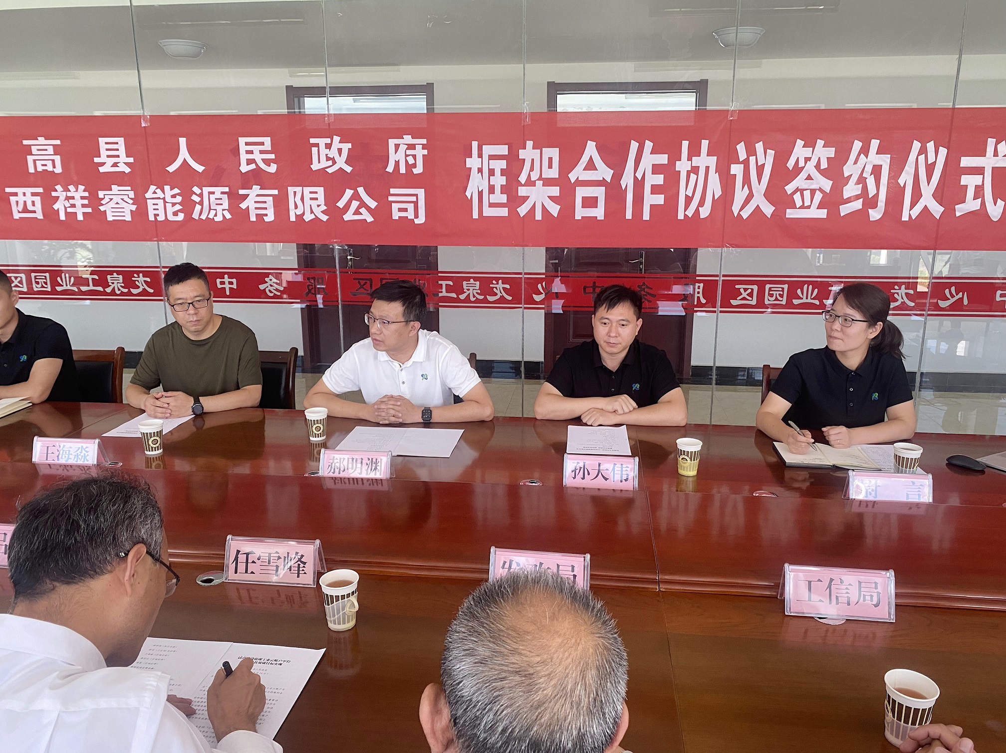 8月26日,“陽高縣人民政府·山西祥睿能源有限公司框架合作協(xié)議”簽約儀式在陽高龍泉工業(yè)區(qū)順利舉行。陽高縣副縣長(zhǎng)任雪峰、龍泉工業(yè)園區(qū)管委會(huì)主任呂福軍、祥睿能源執(zhí)行總裁郝明淵、智慧工業(yè)BU總經(jīng)理尉言、總工孫大偉等出席簽約儀式。