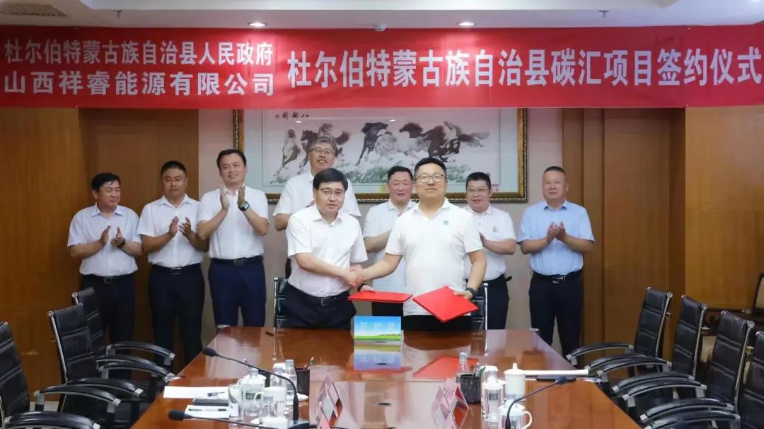 7月2日,黑龍江省大慶市杜爾伯特蒙古族自治縣人民政府與山西祥睿能源有限公司在杜蒙縣舉行了碳匯項目簽約儀式。杜爾伯特蒙古族自治縣委書記張劍,縣委副書記、縣長朱學良,縣領(lǐng)導田偉、王東福、梁貴平,祥睿能源董事長王正通、黑龍江祥睿能源總經(jīng)理楊占波出席簽約儀式,山西藍頓旭美食品有限公司董事長郝旭等參加簽約儀式。這次簽約標志著祥睿能源碳匯項目落戶杜蒙縣,將為該縣生態(tài)高質(zhì)量發(fā)展提供碳減排數(shù)字科技運營與發(fā)展賦能。