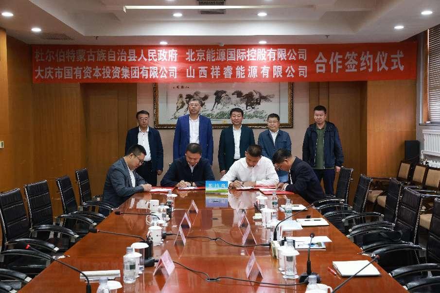 9月28日上午,祥睿能源簽約黑龍江省杜爾伯特蒙古族自治縣人民政府,與北京能源國際控股有限公司、大慶市國有資本投資集團有限公司共同合作風(fēng)光制氫制航油項目。這個項目的簽約,標(biāo)志著祥睿能源由綠色數(shù)字、綠色運營升級到綠色科技生態(tài)體構(gòu)建和運營體系的實現(xiàn)。杜爾伯特蒙古族自治縣縣委書記張劍、黑龍江省大慶市商務(wù)局局長董輝、杜爾伯特蒙古族自治縣副縣長田偉,大慶國投集團黨委委員、副總經(jīng)理王世江,北京能源國際控股有限公司東北公司總經(jīng)理侯坤、總監(jiān)張紅喬,祥睿能源董事長王正通及黑龍江祥??偨?jīng)理楊占波、副總經(jīng)理李殿順等有關(guān)領(lǐng)導(dǎo)和人員出席簽約儀式。在簽約儀式上,杜蒙縣副縣長田偉介紹了參會來賓并宣布“風(fēng)光制氫制航油項目簽約儀式”正式開始。