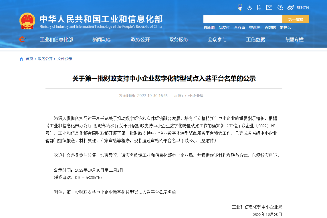 為加快帶動(dòng)一批中小企業(yè)成長(zhǎng)為專精特新企業(yè),推動(dòng)產(chǎn)業(yè)基礎(chǔ)高級(jí)化、產(chǎn)業(yè)鏈現(xiàn)代化,2022年到2025年,中央財(cái)政計(jì)劃分三批支持地方開(kāi)展中小企業(yè)數(shù)字化轉(zhuǎn)型試點(diǎn),提升數(shù)字化公共服務(wù)平臺(tái)服務(wù)中小企業(yè)能力,打造一批小型化、快速化、輕量化、精準(zhǔn)化的數(shù)字化系統(tǒng)解決方案和產(chǎn)品,形成一批可復(fù)制可推廣的數(shù)字化轉(zhuǎn)型典型模式,圍繞100個(gè)細(xì)分行業(yè),支持300個(gè)左右公共服務(wù)平臺(tái),打造4000-6000家“小燈塔”企業(yè)作為數(shù)字化轉(zhuǎn)型樣本,帶動(dòng)廣大中小企業(yè)“看樣學(xué)樣”加快數(shù)字化轉(zhuǎn)型步伐,促進(jìn)專精特新發(fā)展。第一批財(cái)政支持中小企業(yè)數(shù)字化轉(zhuǎn)型試點(diǎn)入選平臺(tái)共98家企業(yè)入選,包括儀器儀表企業(yè)、數(shù)控機(jī)床產(chǎn)業(yè)大腦、工業(yè)互聯(lián)網(wǎng)公司、科研院所等,覆蓋36個(gè)地區(qū)。