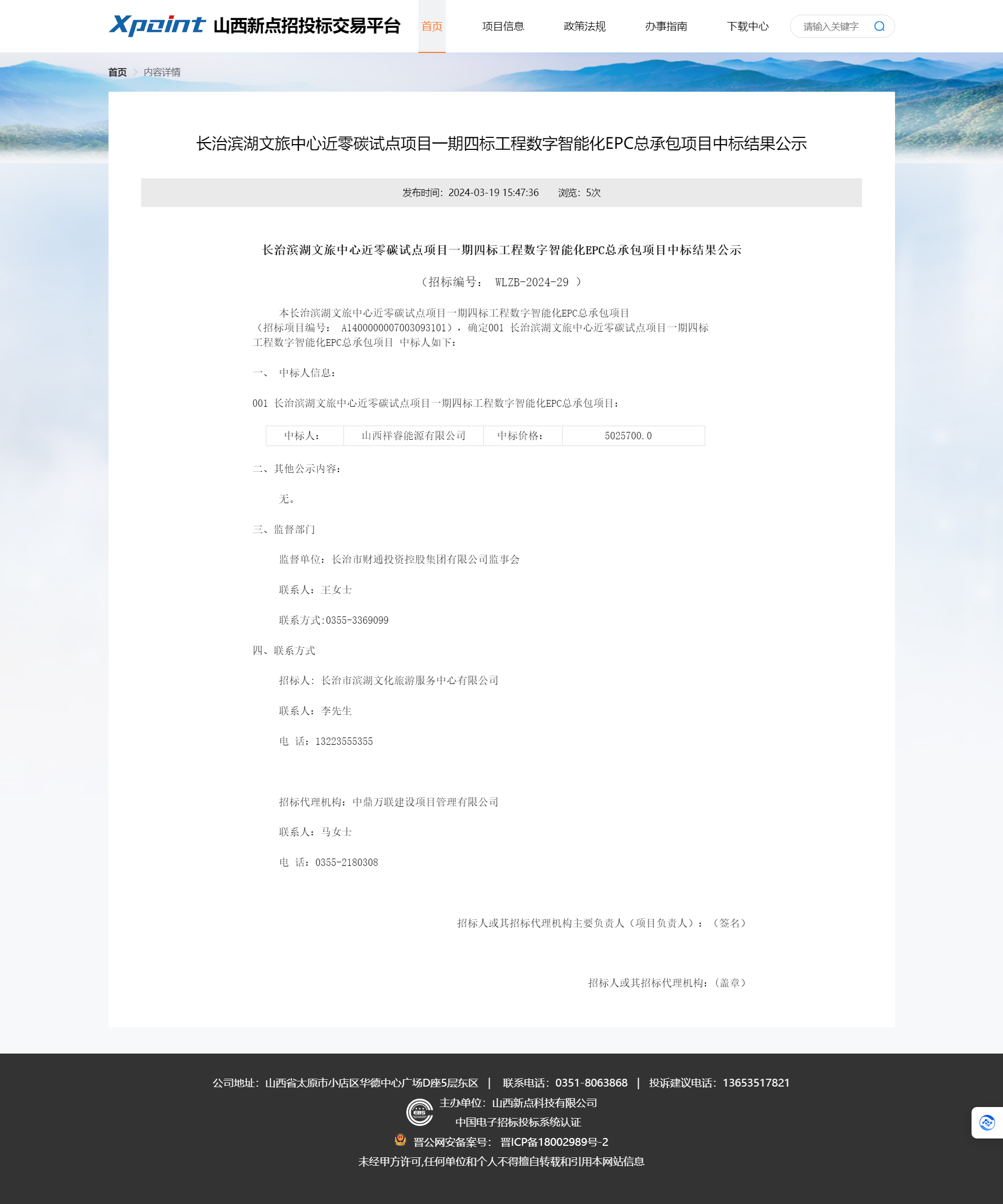 長治濱湖文旅中心近零碳試點項目一期四標工程數(shù)字智能化EPC總承包項目