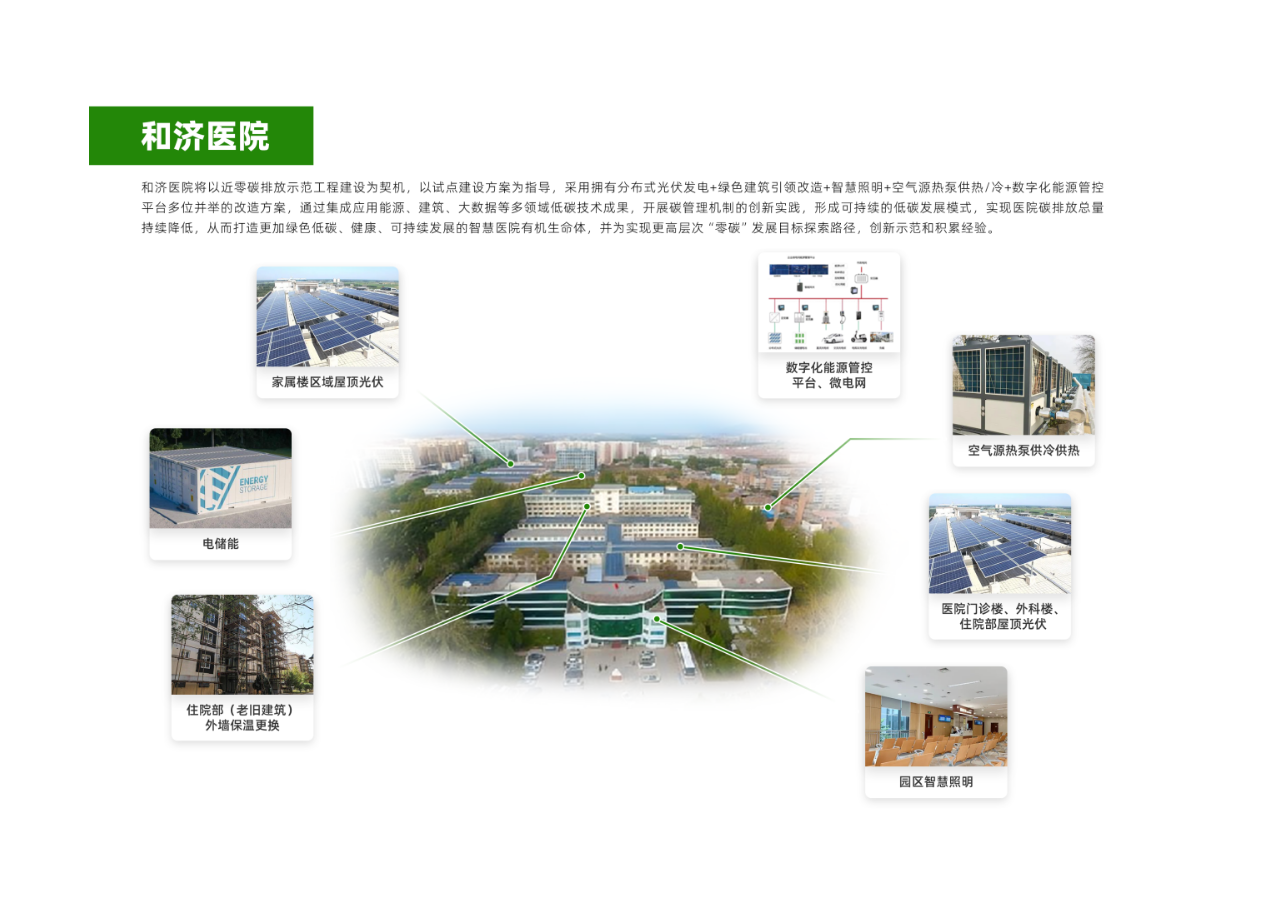 祥睿能源將為醫(yī)院帶來最新的節(jié)能技術(shù)和解決方案,采用數(shù)字化能源管理平臺,以實時監(jiān)控和管理醫(yī)院的能耗情況;引入儲能系統(tǒng)優(yōu)化醫(yī)院的能量使用,修繕及改造現(xiàn)有光伏系統(tǒng),增強醫(yī)院自身的可再生能源發(fā)電能力。通過這些節(jié)能舉措打造一個高效、智能的能源管理體系,確保醫(yī)院的能源消耗和碳排放實現(xiàn)可持續(xù)降低,提升能源效率,為綠色發(fā)展奠定堅實基礎。