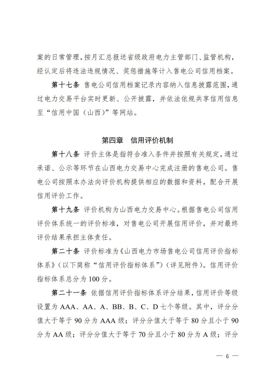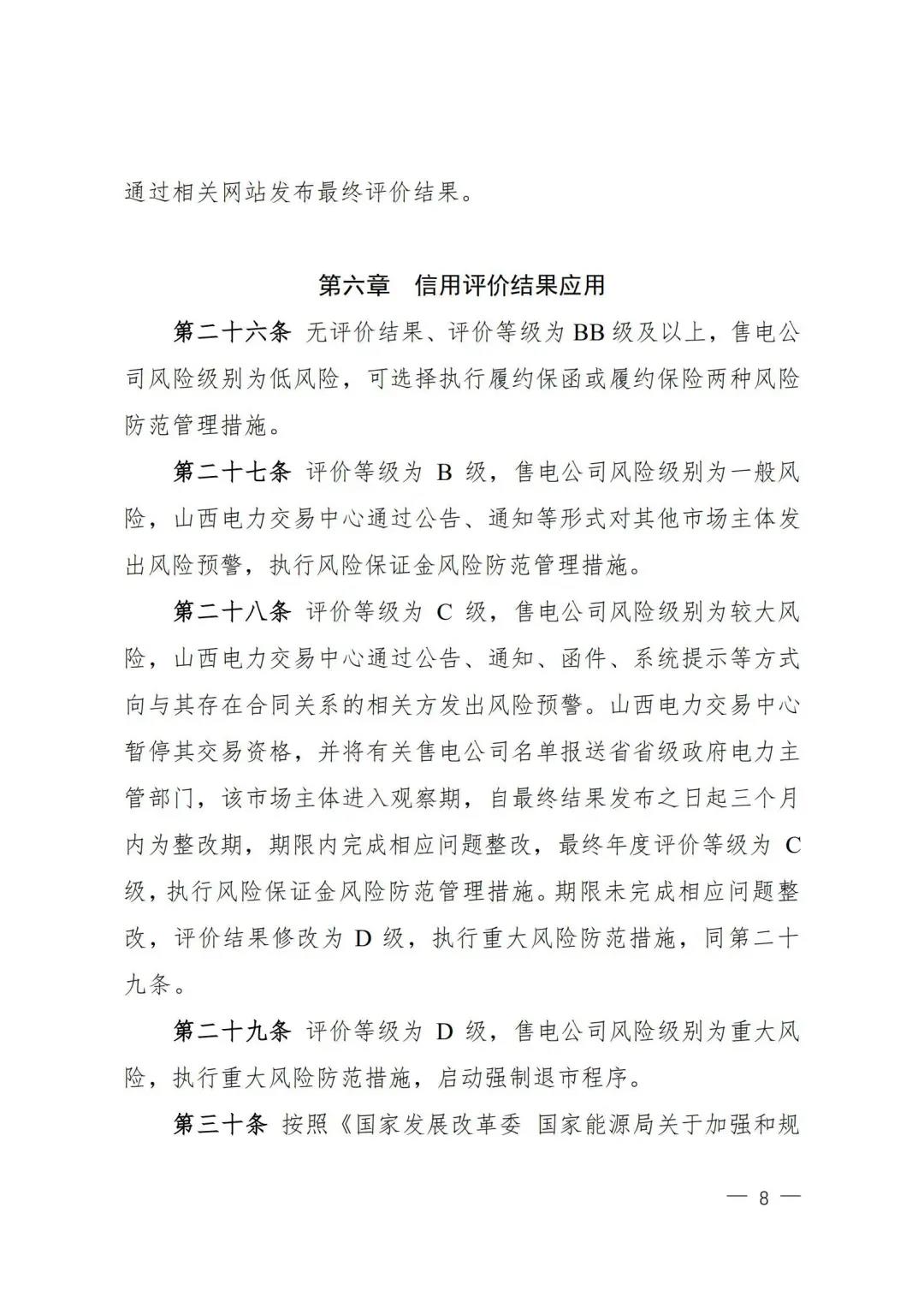 | 山西電力市場售電公司信用評價與風險防范管理辦法:依據(jù)風險級別執(zhí)行履約保函、保險或風險保證金措施 |