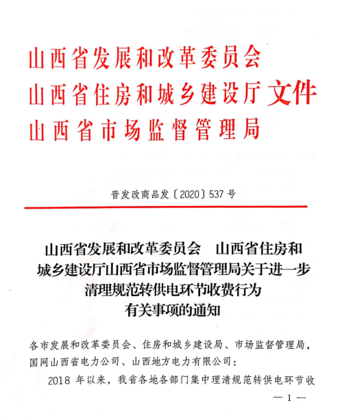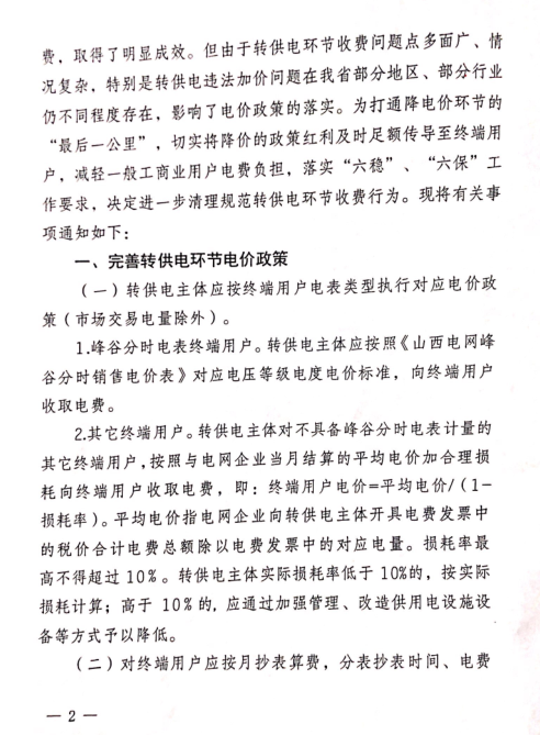 | 山西省進一步清理規(guī)范轉(zhuǎn)供電環(huán)節(jié)收費行為 |