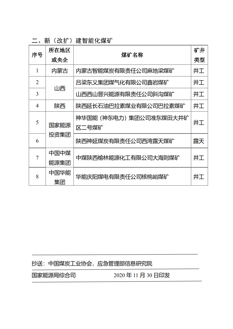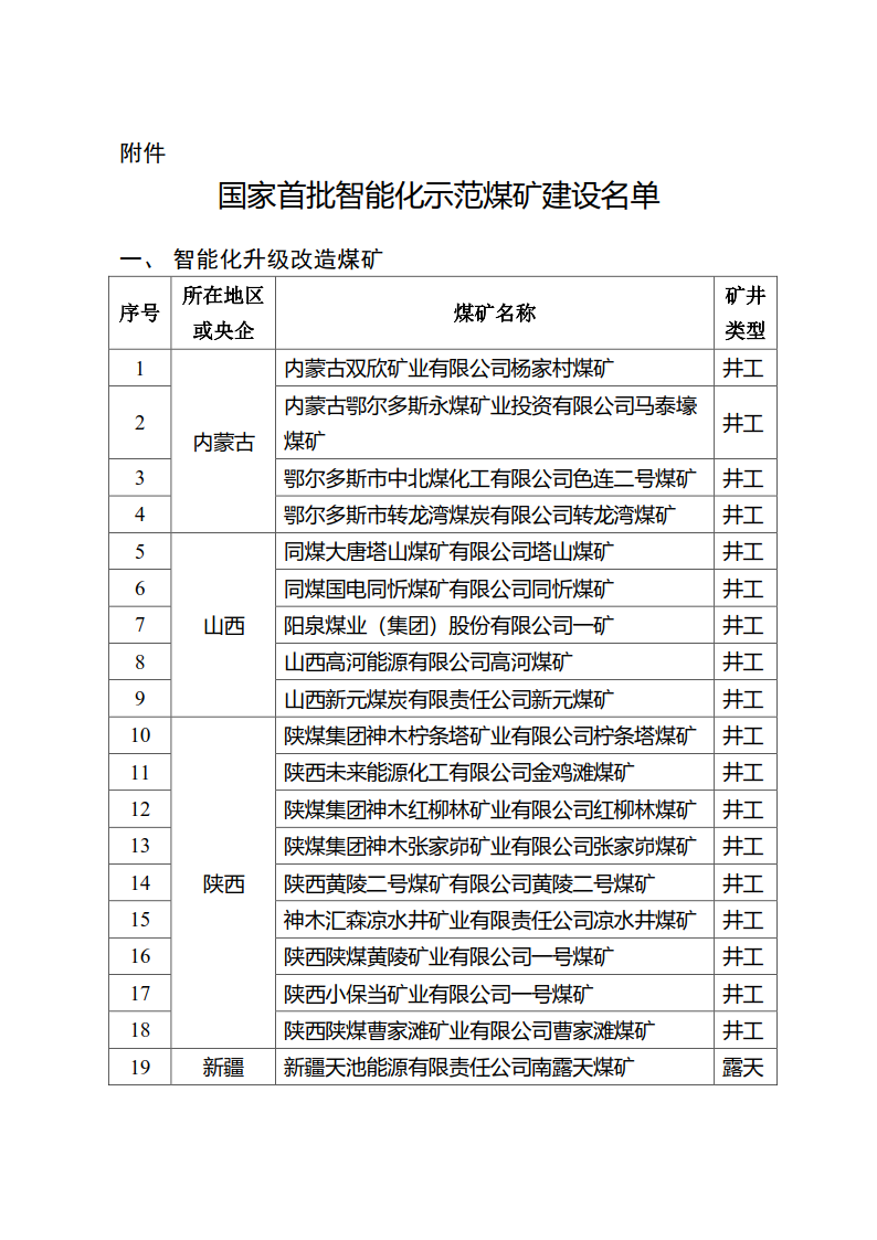 | 能源局《關于開展首批智能化示范煤礦建設的通知》(內附國家首批智能化示范煤礦建設名單) |